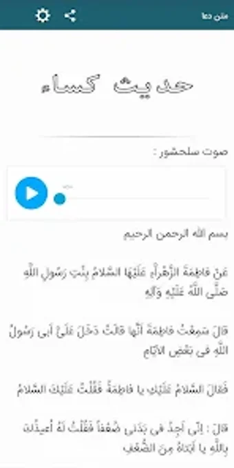 حدیث کساءは、著名な学者によって語られたハディース・キサの完全なテキストと音声を提供するAndroidプラットフォーム向けの教育アプリケーションです。このアプリはペルシャ語の翻訳を特徴としており、より広いオーディエンスにアクセス可能です。ユーザーはさまざまな読みやすいフォントを楽しむことができ、フォントサイズを調整して、学習セッション中の快適さを確保するために読書体験を向上させます。